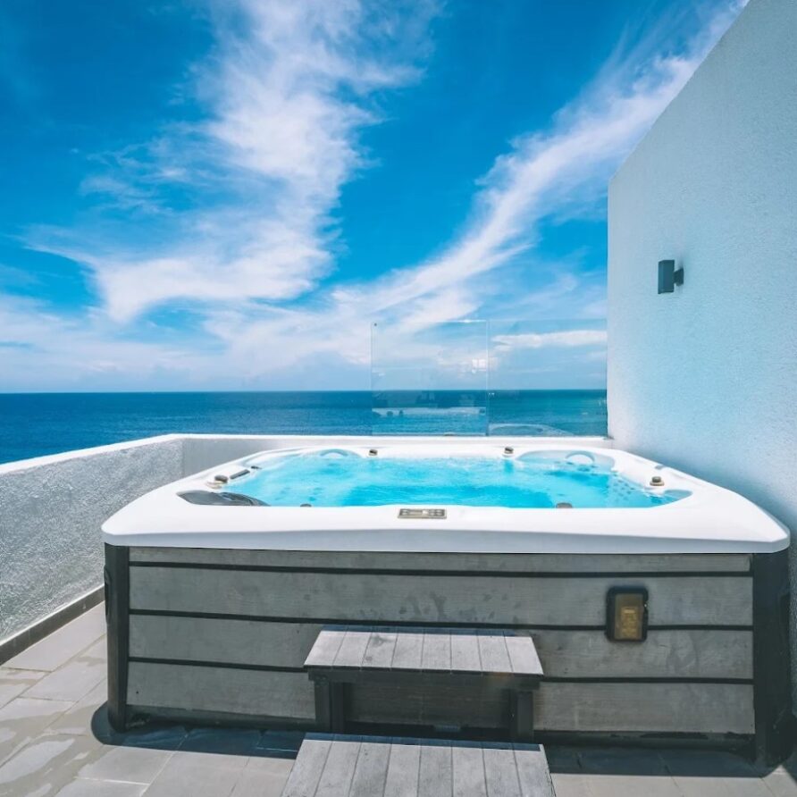 - Amenities: Bathroom essentials, BBQ, Beachfront, Bedroom comforts, Free parking, Gym, Hair dryer, Heating, Jacuzzi, Pool, Terrace, Wi-Fi