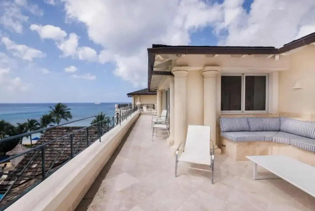Enjoy relaxed beachfront living in this spacious 3-bedroom penthouse at Schooner Bay, Speightstown. Set over two levels, the residence offers panoramic Caribbean Sea views, a large covered terrace, and elegant open-plan interiors. Located in a quiet beachfront development with pool and tropical gardens, and within walking distance to restaurants, shops, and local amenities, it’s ideal for a refined island escape.